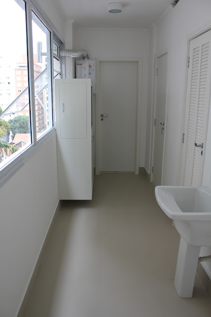 Ampla área de lavanderia e de serviço , quarto e banheiro para empregados.