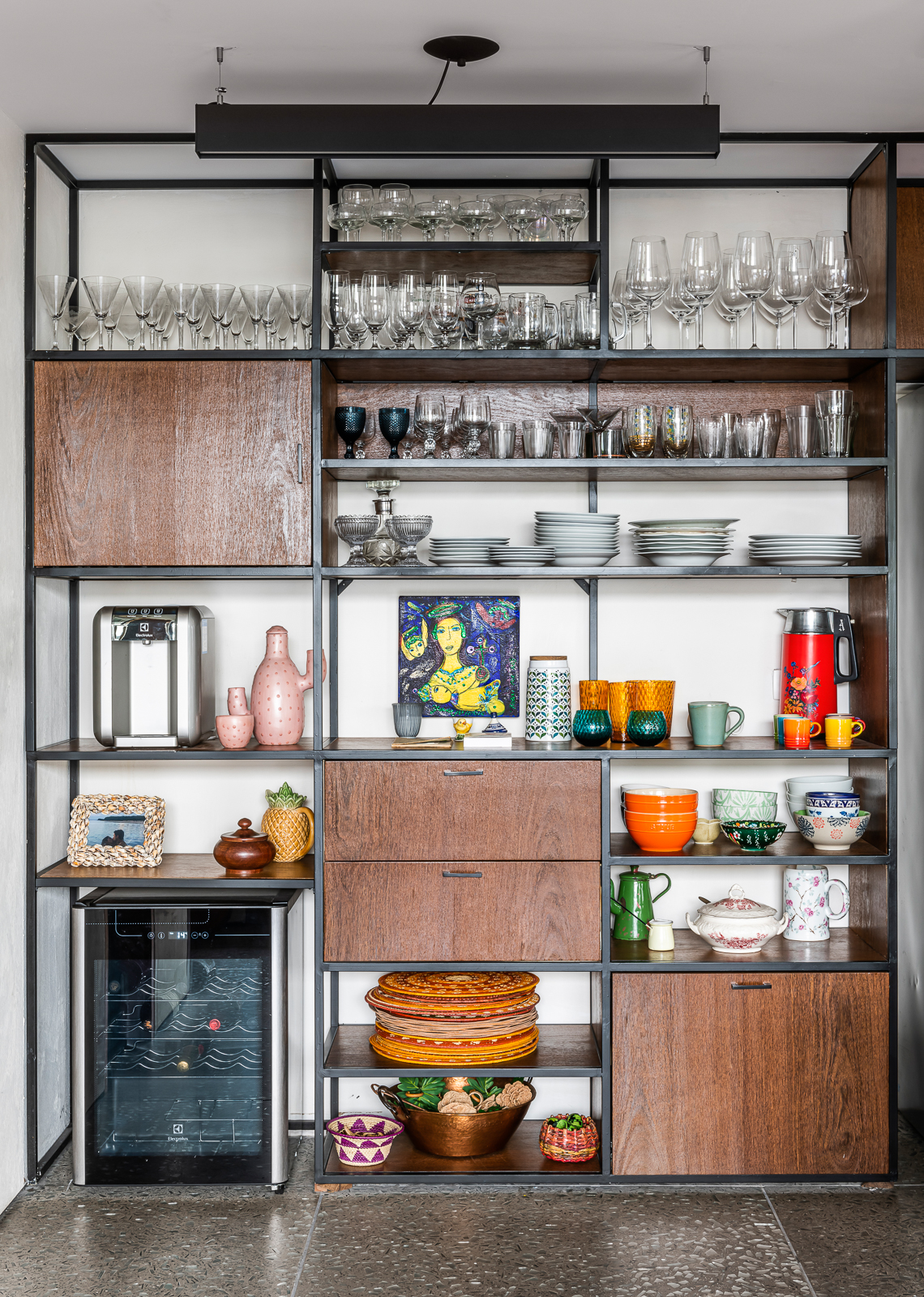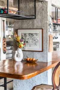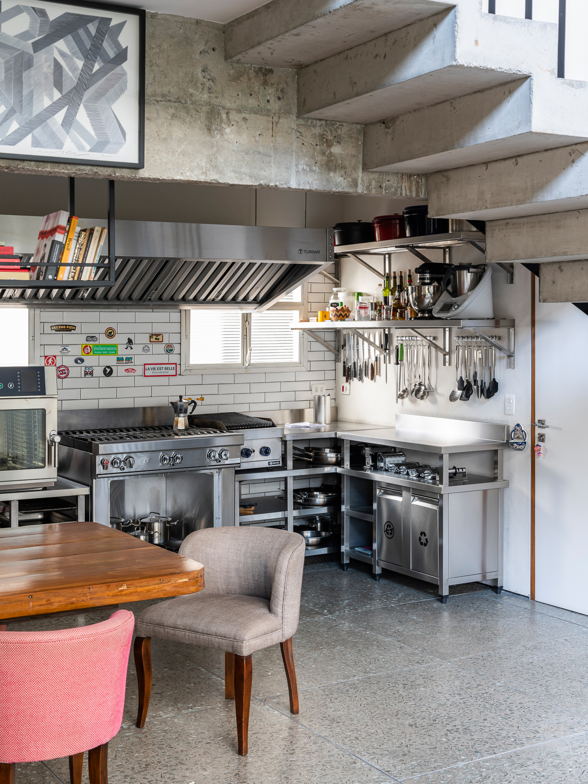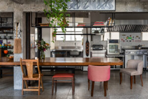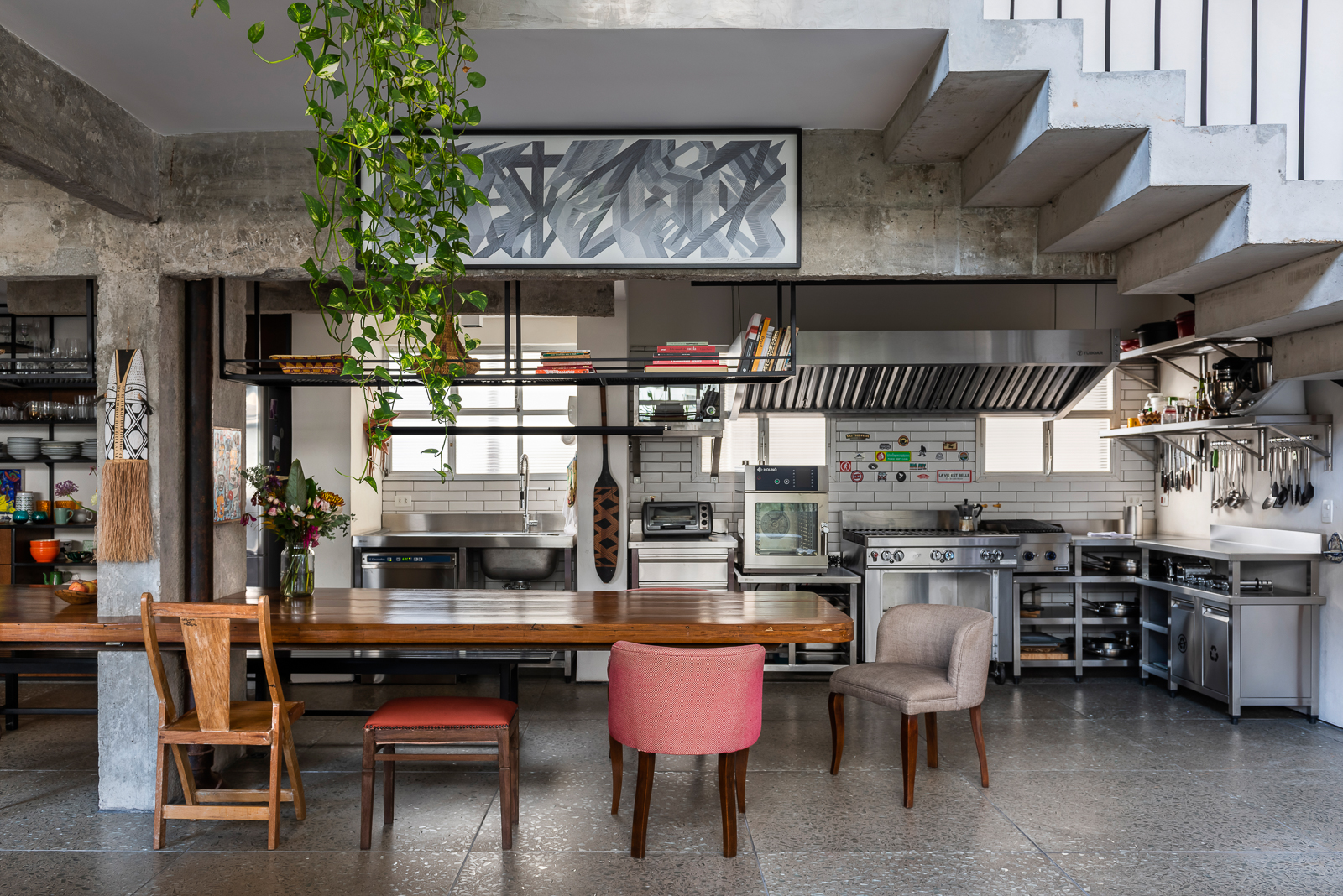 A cozinha de chef está totalmente equipada e integrada ao living