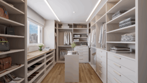 ° Marcenaria Bontempo no closet da suíte master, banheiros, rouparia, cozinha e área de serviço, projetada para organizar e agregar estilo