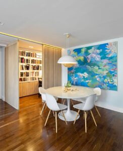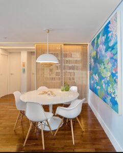 Será vendido com mobiliário planejado por arquiteta e decorado: sofá, mesa, cadeiras, lustre, cama com baú, cabeceira, mesas de cabeceira, 2 poltronas com pufes, adega para 34 garrafas e 2 monitores no escritório.